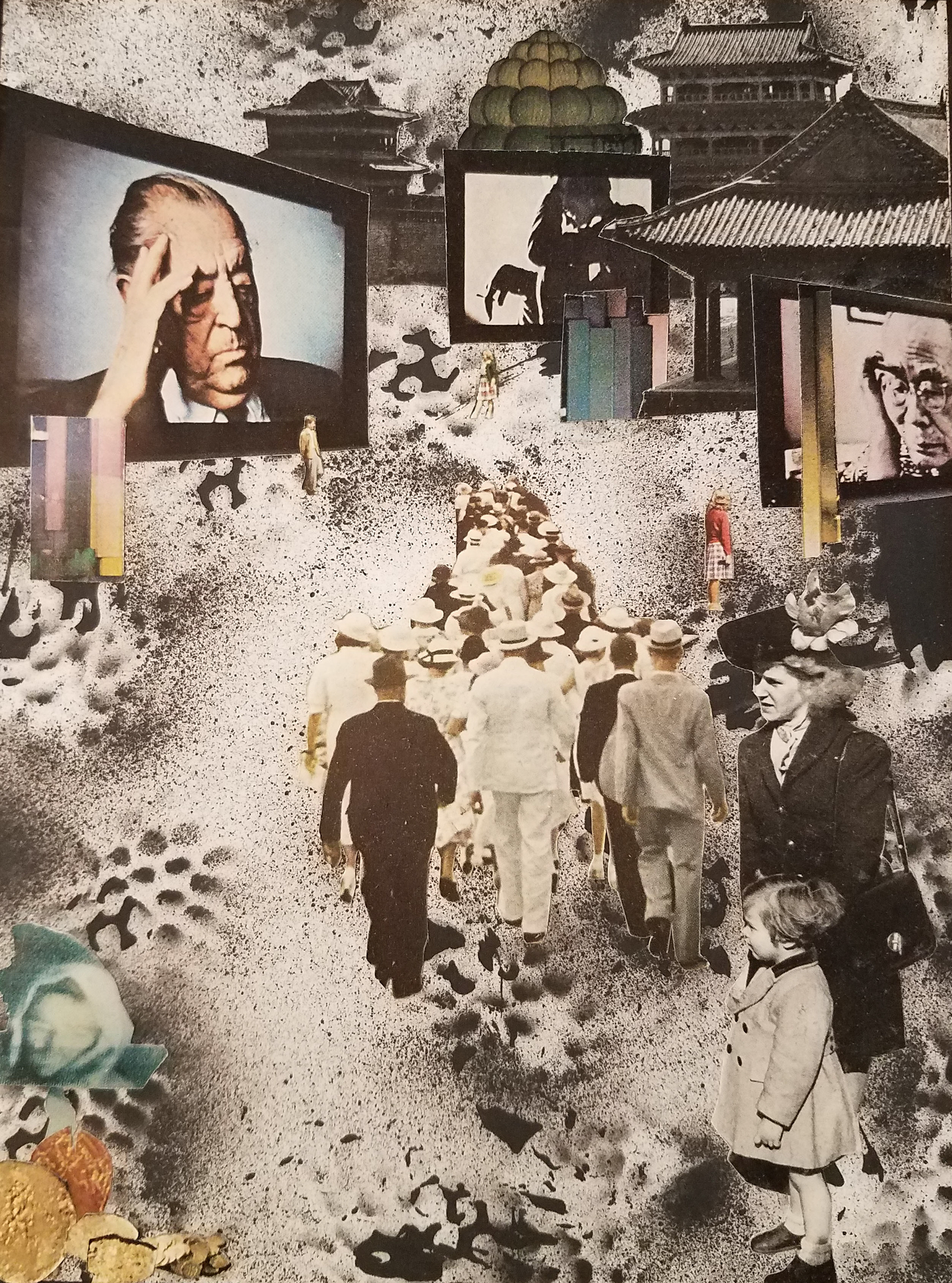 Images projected on building on Capital Hill as part of the "Alterations" collage show at Photo Center NW 2024